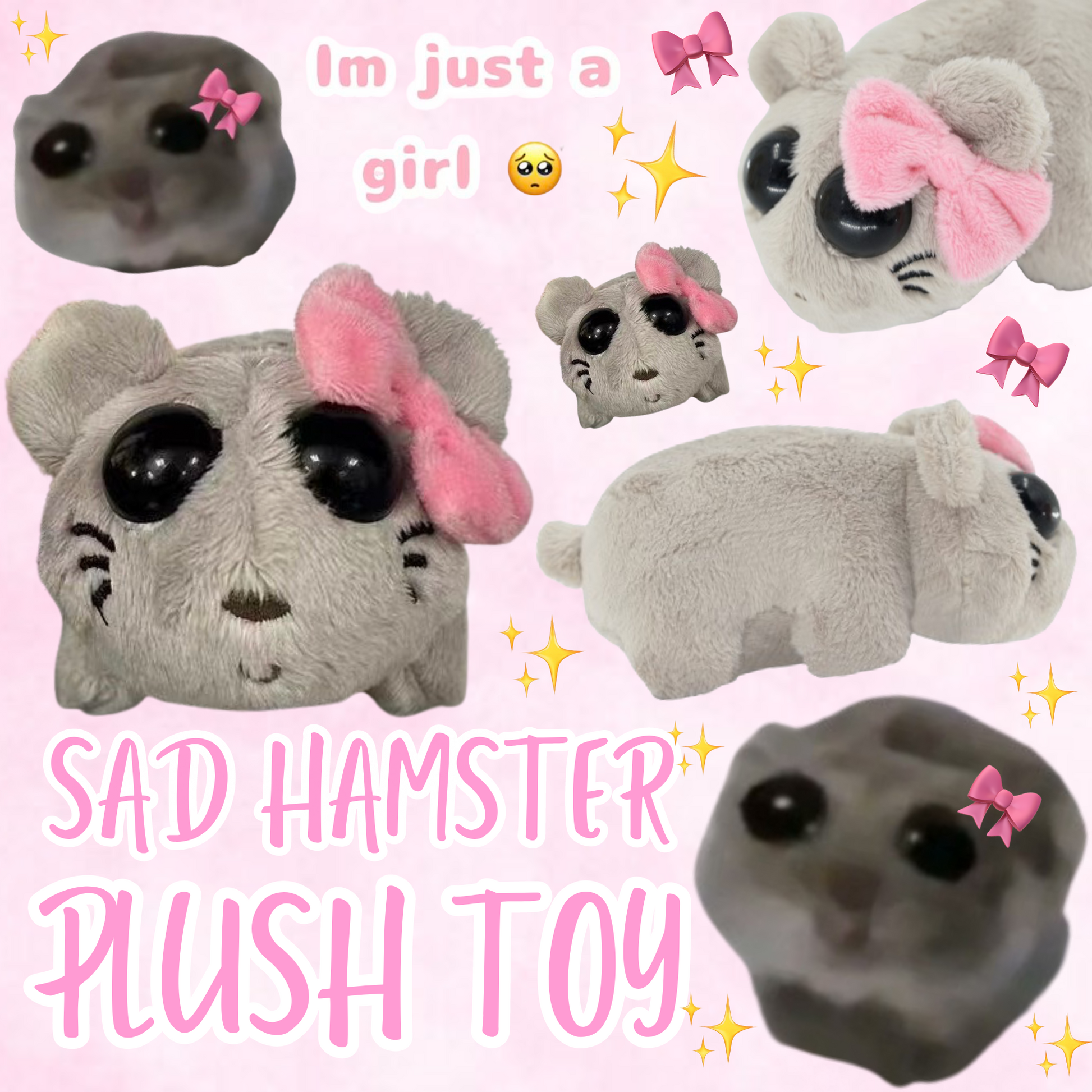 Inspired by the viral sad hamster meme, this adorable plush toy is perfect for cuddling and will brighten your day!